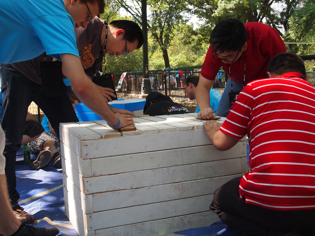 Students are building and painting rack while some other students are painting art. The best part of this event is, we are having all those activities at Centre Park of New York City. Finally we can go out of the hotel and have some activities surrendered with green! This is also a great chances for student to meet new friends from other countries and work out the same piece of project. Aren’t this is so meaningful where students can gather together and do some thing great regardless of races, culture and background.